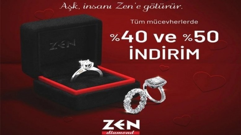 Bir dünya markası olan ZEN pırlanta, Sevgililer Günü'ne özel kampanya başlattı. 1 Şubat'ta başlayan ve 14 Şubat'ta sona erecek olan kampanya kapsamında tüm mücevherlerde yüzde 40 ve yüzde 50 indirim uygulanacak. Yine kampanya kapsamında 25 bin lira ve üzeri yapılacak alışverişlerde 'Pırlantalı Aşk Anahtarı Kolye' hediye edilecek.