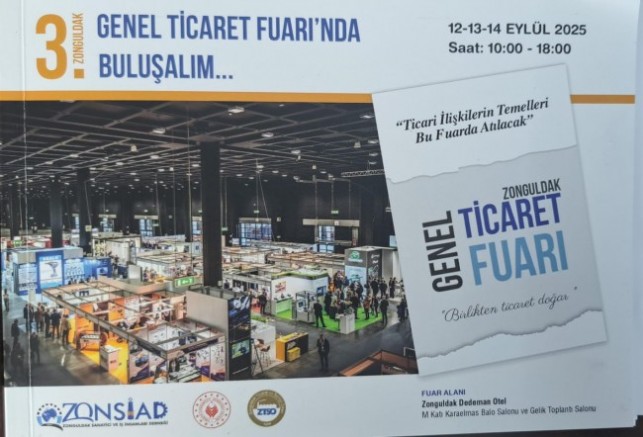 Zonguldak Sanayici ve İş İnsanları Derneği (ZONSİAD), Zonguldak Valiliği ve Zonguldak Ticaret ve Sanayi Odası’nın ortaklaşa düzenlediği 3. Zonguldak Genel Ticaret Fuarı, bu yıl 12-13-14 Eylül 2025 tarihlerinde gerçekleştirilecek.