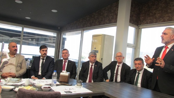 Yılmaz ardından, hem Meclis üyesi adaylarını gazetecilere tanıttı hem de toplantıya katılan belde sınırlarındaki 4 mahallenin muhtarlarını anons etti.