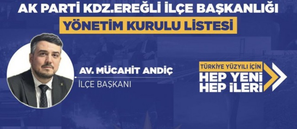Av. Mücahit Andiç’in İlçe Başkanlığı’ndaki AK Parti Kdz.Ereğli Teşkilatı yeni yönetiminin görev dağılımı şu şekilde oluştu: