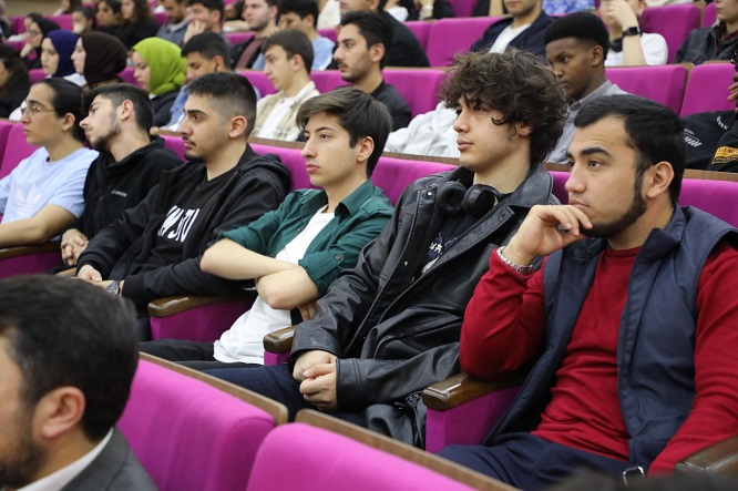 Fütürist Samet Çelik ise “Gelecek 30 Yıl: Paradigma Değişimi ve Geleceğin Meslekleri” konu başlığında katılımcılara gelecekte yaşanacak küresel değişimler hakkında görseller aktararak öğrencilere meslek tercihleri konusunda tavsiyelerde bulundu.