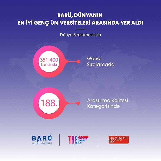 İngiltere merkezli yükseköğretim derecelendirme kuruluşu Times Higher Education’ın (THE), dünyanın en iyi genç üniversitelerine yer verdiği “2024 Genç Üniversiteler Sıralaması” açıklandı. Yaşı 50 ve altında olan 79 ülkeden dünyanın en iyi üniversitelerinin sıralandığı listeye, Bartın Üniversitesi (BARÜ) kuruluşunun 15’inci yılında 351-400 bandından girerek büyük bir başarı elde etti.