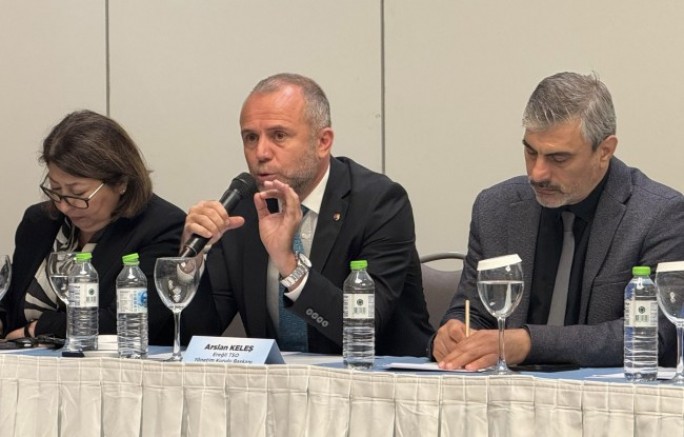 Kdz.Ereğli Ticaret ve Sanayi Odası Yönetim Kurulu Başkanı Arslan Keleş, toplantı sırasında bir konuşma yaparak; iş dünyasının sorunları ve çözüm önerileri konusunda görüşlerini katılımcılarla paylaştı.