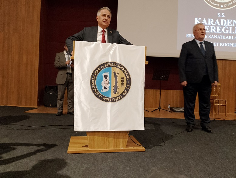 “Kooperatifler arasında Türkiye’de 175 bin nüfuslu bir ilçe olarak ilk 60 kooperatif içinde yer alıyoruz. Bize bu imkanları sağlayan Sayın Milletvekilimize, sayın İlçe Başkanlarımıza, Sayın Cumhurbaşkanımıza. Maliye Bakanımıza huzurunuzda teşekkür ediyorum. Biz, küçük esnaf olarak geçimini sağlamakta olan taksici, kamyoncu, marangozu, demircisi; birçok esnaf ve sanatkarımız, en azından devletimize yük olmadan geçimini sağlamayan çalışan küçük esnaf ve sanatkar topluluğuyuz. Tabi ki biz de sıkıntılar çekiyoruz ama esnafımızı sağa, sola göndermeden kooperatif olarak mutlaka sorunları çözüyoruz. Çözemediğimiz konularda da Sayın Vekilimizi arıyoruz. Biz har zaman Devletimizin yanındayız.”