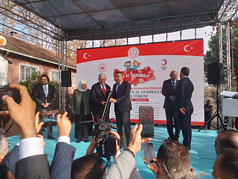 Türkiye Cumhuriyetinin son başbakanı ve 28. Türkiye Büyük Millet Meclisi başkanı Binali Yıldırım eşi ile birlikte Kdz.Ereğli’ye gelerek 81 il 81 Anaokulu projesi kapsamında Türk Kızılay Derneği Zonguldak Şube Başkanlığı tarafından tamamlanan Öget Şen Kızılay Anaokulu’nun resmi açılışını gerçekleştirdi.