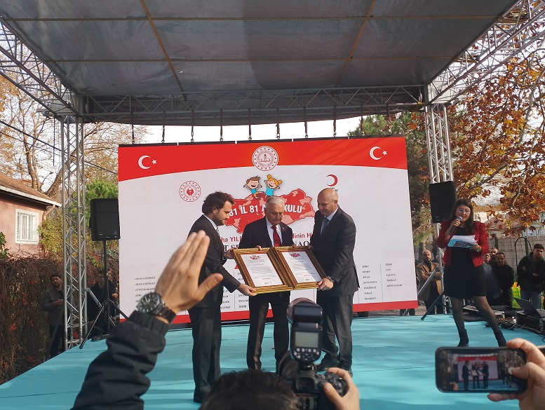 Konuşmaların ardından Binali Yıldırım tarafından hayırsever Yaman Şen'e eğitime katkılarından dolayı berat takdim etti. Berat takdimine, Zonguldak Valisi Osman Hacıbektaşoğlu ve Temel Eğitim Genel Müdürü Ebubekir Sıddık Savaşçı da eşlik etti.