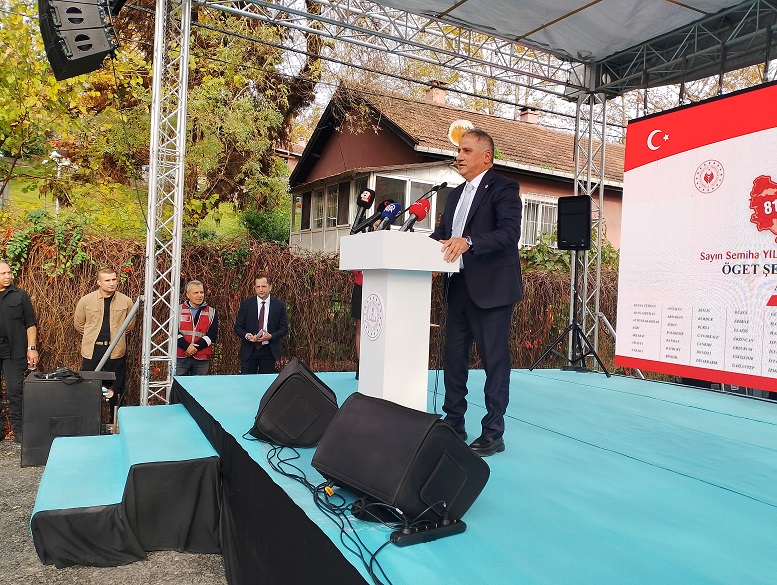 Program, saygı duruşu ve İstiklal Marşı'nın ardından halk oyunları gösterisi ve "81 İl 81 Anaokulu Projesi" tanıtım filmi ile başladı. Okulun yapılmasını sağlayan hayırseverlerden Yaman Şen eğitime yapılan yatırımın önemine vurgu yaparak, okulu babaannesi emekli öğretmen Öget Şen'in anısını yaşatmak için yaptırdıklarını dile getirdi.