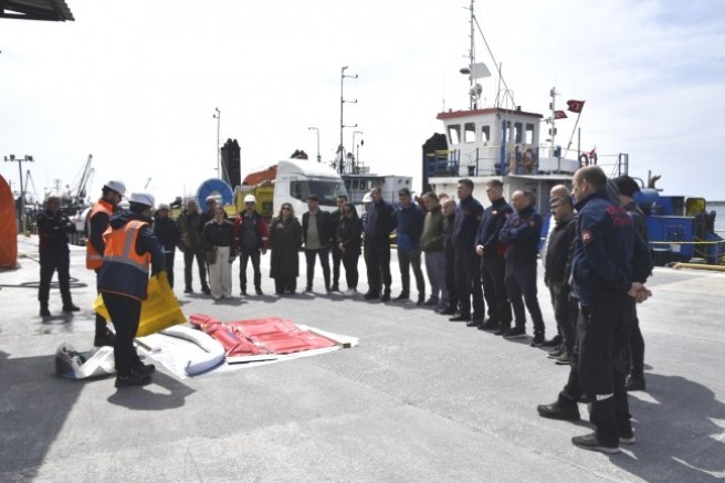 Deniz Kirliliğine Acil Müdahale Tatbikatı gereği, liman içinde oluşan deniz kirliliğine müdahale edildi. Eğitim ve Tatbikat Koordinatörleri Özhan Kırac ve Samet Sertel tarafından personele kullanılacak malzemeler tanıtıldı, teknik bilgiler aktarıldı, tatbikat başarılı şekilde sonuçlandırıldı.