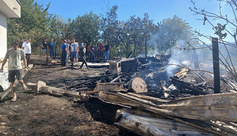 Bugün (22 Ağustos sabah saatlerinde meydana gelen ve kısa sürede barakayı saran yangının çevreye sıçramaması için ev ve mahalle sakinleri çaba gösterdi.