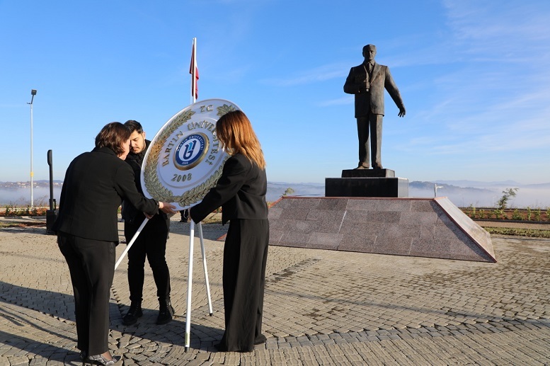 Bartın Üniversitesi (BARÜ) Kutlubey Yerleşkesi Rektörlük Tören Alanında gerçekleştirilen anma töreni Rektör Yardımcısı Prof. Dr. Sevim Çelik tarafından Atatürk Anıtı’na çelengin sunulmasıyla başladı.