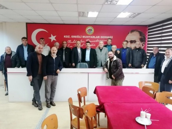 Aday Adayı Çakır, Karadeniz Ereğli Muhtarlar Derneği’ne giderek mahalle ve köy muhtarları ile bir araya geldi. Dernek Başkanvekili Nazif Kaplan, ziyarette yaptığı konuşmada, “çıkmış olduğunuz AK Parti Karadeniz Ereğli Belediye Başkan Aday Adaylığında başarılar diliyoruz. Muhtarlar Derneği olarak da başarılarınız devamını temenni ediyoruz” dedi.