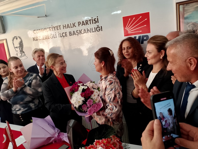 28 Eylül 2025 Pazar günü yapılan CHP Karadeniz Ereğli İlçe Kongresi’nde İlçe Başkanlığına seçilen Zerrin Yılmaz Erdoğan, parti binasında düzenlenen devir teslim töreniyle ilçe başkanlığı görevini eski Başkan Ali Kocamanoğlu’ndan devraldı.
