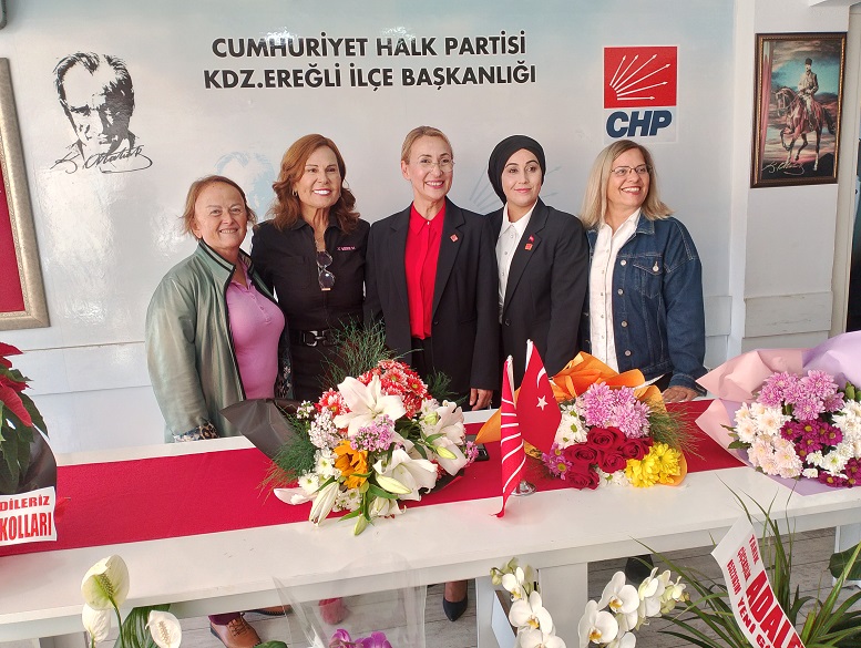 Teşekkür ediyoruz..”şeklinde konuşmasını sürdürdü. Başkan Erdoğan, basın mensupları, Kadın gücü kooperatifi Başkanı Neriman Posbıyık ve yönetimi ile günün anısına fotoğraf çektirdi. Program bitişi, CHP kdz Ereğli ilçe başkanı Zerrin Yılmaz Erdoğan, CHP Kdz Ereğli ilçe kongresinde aday olan Noyan Keskin ve güven Demir ile birlik ve beraberlik temsili olarak elleri birleştirip, hava kaldırarak partili halkı selamladılar.