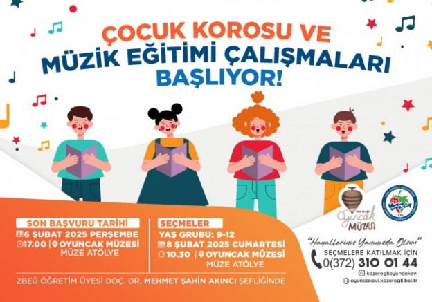 “ZBEÜ Öğretim Üyesi Doç.Dr.Mehmet Şahin Akıncı Şefliğinde Çocuk Korosu ve Müzik Eğitimi Çalışmaları başlıyor. Hem müzik eğitimi alacakları hem de bir koro çalışmasına dahil olacakları bu anlamlı proje için aşağıda belirtilen bilgiler ışığında 0372 310 01 44 numaralı telefonu arayarak ön kayıt yaptırmaları gerekmektedir.