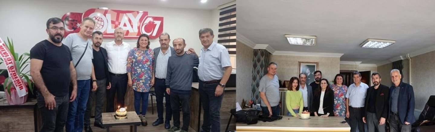Başkan Erel ve yönetim kurulu üyeleri daha sonra İsmet Yazıcıoğlu’nun sahibi, Recep Akkaya’nın Yazı İşleri Müdürü olduğun Olay 67 Gazetesi’ni ziyaret ederek, 7. Kuruluş yıldönümünü pasta keserek kutladı.