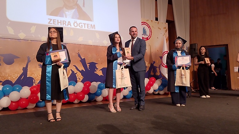 Törende fakülte birincisi, ikincisi ve üçüncüsü olan öğrencilere ödülleri Milletvekili Dr. Eylem Ertuğrul, Cumhuriyet Başsavcısı Mustafa Erbaş, Rektör Yardımcısı Prof. Dr. Hakan Kutoğlu ve diğer protokol üyeleri tarafından takdim edildi.