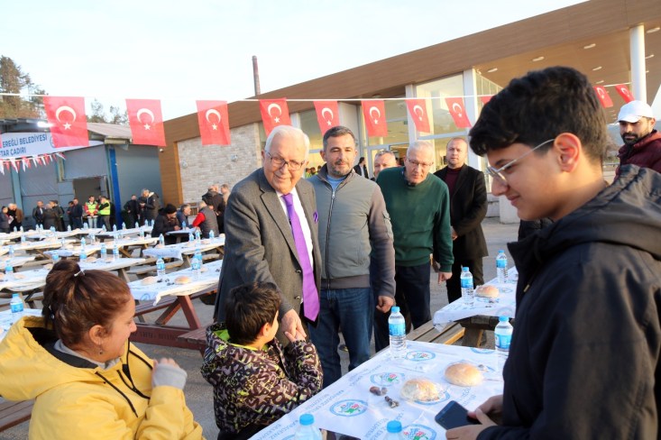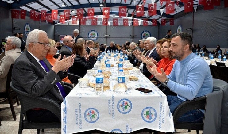 Ereğli halkı bugüne kadar her türlü dayanışmayı gösterdi. Şükranlarımı sunuyorum. Covid-19’da birlik beraberlik içerisinde el ele vererek maskeleri ürettik, dezenfektan ürettik., bütün evlerimize gönderdik. 400 bin maske imal ettik. Hemen peşinden 11 ilde yüreğimizi yakan deprem oldu. Yine Ereğli halkı mahallelerden, köylerden mont, battaniye, bot, iç çamaşırı aklınıza gelen her ihtiyaç malzemesini bize getirerek 18 tırla deprem bölgesine ulaştırdık. Ereğli halkının yaptığı bu yardımseverliği unutmamız mümkün değil. Allah sizlerden razı olsun, şükranlarımı sunuyorum. Bu akşamda hep birlikte iftarımızı açıyoruz. Allah tuttuğunuz oruçları kabul etsin. Sağlık, sıhhat, mutluluk versin. Çoluk, çocuğunuzla birlikte huzur diliyorum. Her zaman Türkiye’de birlik beraberlik içerisinde olmamız lazım. Mustafa Kemal Atatürk’ün çizdiği yolda laik cumhuriyette, sosyal hukuk devletinde hep beraber el ele yürümeye kararlıyız. Kardeşliğimizi hiç kimse bozamaz. İşte burada kardeşliğimizi çok güzel sergiliyoruz. Hepinizi saygıyla, sevgiyle selamlıyorum.”