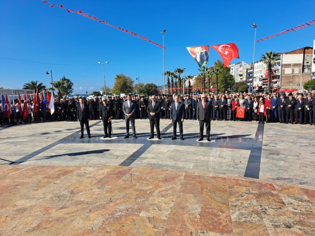 Saygı duruşunda bulunulup İstiklal Marşımızın söylenmesiyle başlayan tören; sırasıyla Karadeniz Ereğli Kaymakamlığı, Karadeniz Bölge ve Garnizon Komutanlığı ile Karadeniz Ereğli Belediye Başkanlığı çelenklerinin Atatürk anıtına sunulmasının ardından sona erdi.