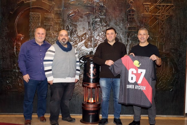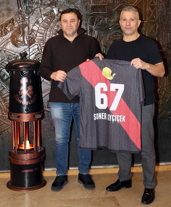 Aynı zamanda Zonguldak Kömür Spor Yönetim Kurulu üyesi olan Tayfun Demir, Ayçiçek’e 5 bin maden şehidinin isminin yazılı olduğu Zonguldakspor forması hediye etti.