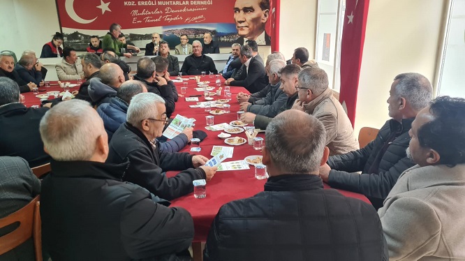 Kdz Ereğli Muhtarlar Derneği lokalinde kahverengi kokarca böceği hakkında bilgilendirme toplantısı düzenlendi. Toplantıya, ilçedeki muhtarlar ve fındık üreticileri katıldı.