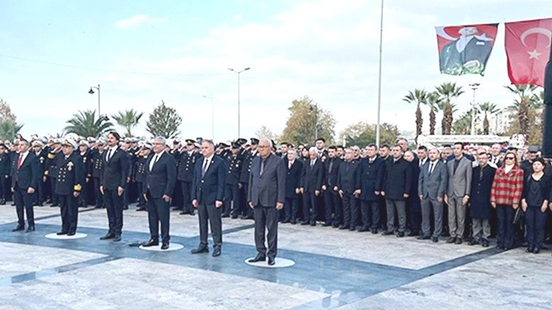 Gazi Mustafa Kemal Atatürk’ün ebediyete intikal saati olan 09.05’te sirenlerin çalmasıyla 2 dakikalık saygı duruşunda bulunuldu, ardından İstiklal Marşı okundu.