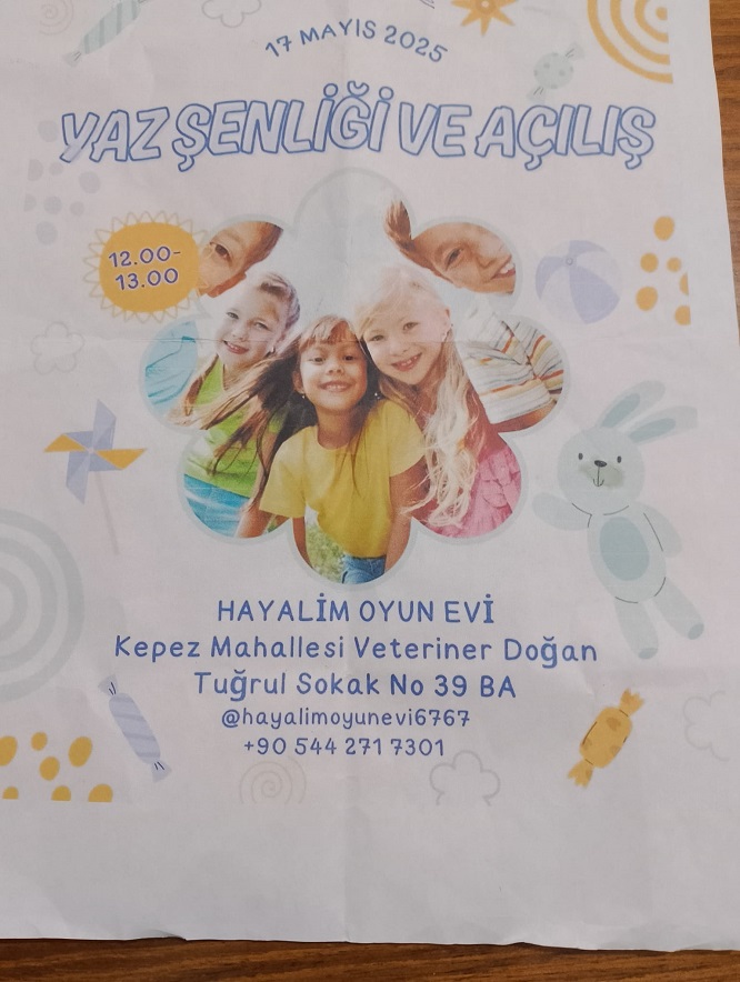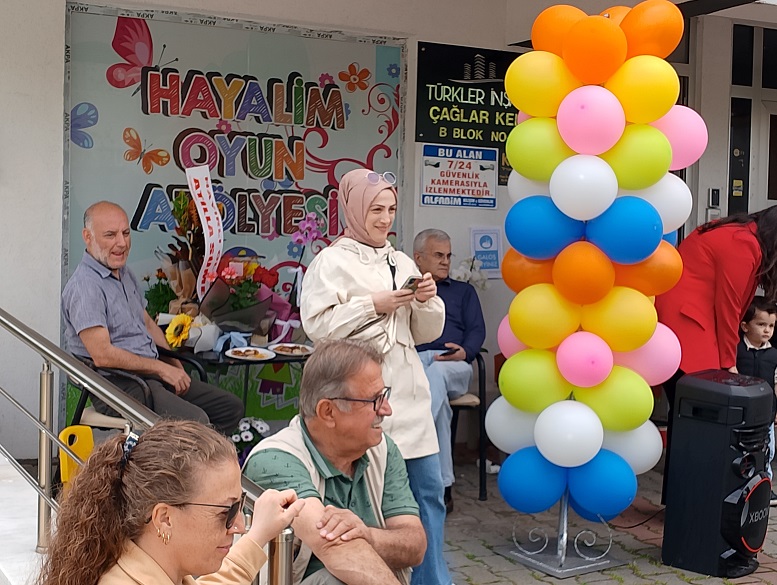 Hayalim oyun atölyesine hoş geldiniz. Ben Şerife Sümer,20 yıldır okul öncesi öğretmeni olarak Yüzlerce minik kalbin büyüme serüvenine eşlik ettim. Her bir çocuğun gözlerindeki ışıktan, kahkahasından, bitmek bilmeyen merakından ilham aldım. İçimde hep bir hayal taşıdım… Çocukların özgürce oynayabileceği, öğrenebileceği, hayal kurabileceği bir alan, Sevgiyle, Güvenle büyüyebileceği bir yuva. İşte şimdi O hayalim gerçek oldu: Hayalim oyun Atölyesi artık sizlerle. Bu atölye sadece bir oyun alanı değil, Her çocuğun kendini bulabileceği, keşfedebileceği, özgürce gelişebileceği bir Dünya. Burada oyun bir eğlence değil, Bir yaşam dilidir. Her taşında sevgi, her köşesinde emek var. Hayal kurmanın gücünde, inanan çocukların gözünden Dünya’yı görebilen herkes için.Daha sonra animasyon ekibinin çizgi film karakterleri görselleri ile organizatörün çaldığı müzik ile oynayan çocuklar ve robotların görüntüsü,renkli sahneler oluşturdu.