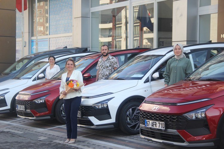 Çilek Sürücü Kursu Sahibi Fatma Öztürk, eğitmenleri ile birlikte geldikleri Hyundai Simge Plaza’dan 5 yeni aracı teslim aldı.