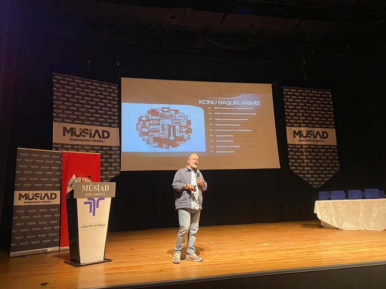 MÜSİAD Kdz. Ereğli Şubesi tarafından düzenlenen söyleşi Hüseyin Tatoğlu Kültür Merkezi'nde yapıldı. Finans uzmanı İslam Memiş, küresel ve yerel ekonomik gelişmeleri değerlendirdi. MÜİSAD Ereğli Şube Başkanı Kemal Gülay, Saygı duruşunda bulunulup İstiklal Marşı’nın söylenmesinin ardından yaptığı konuşmada, Memiş'in piyasa gerçeklerini güvenilir analizlere dayanarak anlatacağını söyledi.