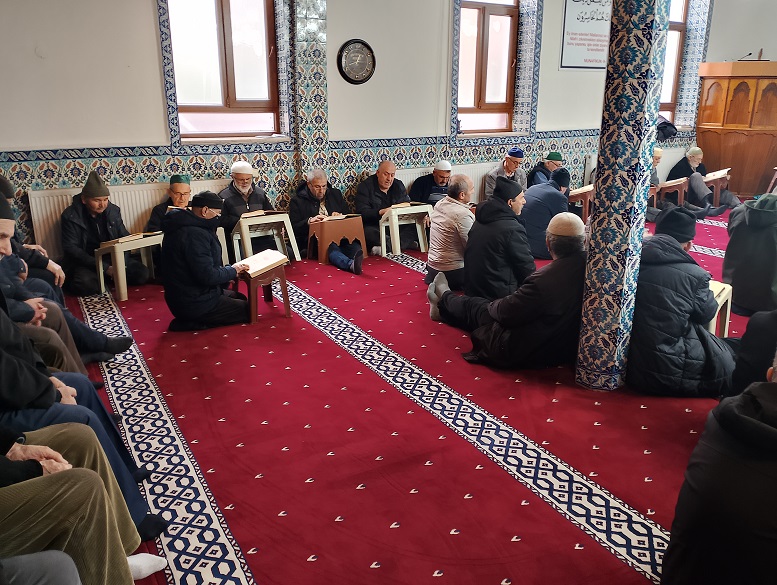Hatim indirme programı,18 aydır devam etmektedir. Her hatim sonunda hatim duası yapılır ve camii cemaatine yemek ikramında bulunulur.08.0 2.2026 Pazar günü öğle namazı öncesi, hatmin son cüzü okunduktan sonra,Dini vaaz sonrası, Hatim Duaa’sını,kdz Ereğli önceki Müftüsü, şimdi ise görev yeri Düzce il Müftüsü olan Osman Aydın yaptı. Hatim duası etkinliğinde, kdz Ereğli ilçe müftüsü Harun Aydoğdu, emekli Müftü İbrahim Demir, Ankara ve Düzce illerinden din görevlileri de, hatim duası programına katılanlar arasındaydı. Hatim duası etkinliğine çok yoğun katılım olduğu gözlerden kaçmadı. Namaz sonrası, camii önünde camii cemaatine, yemek ve simit ikramında bulunuldu.