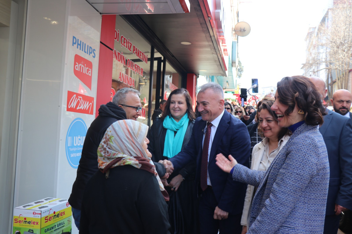 İYİ Parti Kdz. Ereğli Belediye Başkan Adayı Murat Sesli, İYİ Parti Kdz. Ereğli İlçe Başkanı Yasemin Erdoğan, 1. Sıra meclis üyesi adayı Op. Dr. Evrim Balbaloğlu, Kdz. Ereğli Belediyesi önceki dönem belediye başkanlarından Murat Sesli ve beraberindeki yaklaşık 500 kişi Meydanbaşı’ndan başlayarak çarşı içi ve pazaryeri esnafını gezerek projelerin yer aldığı katalog ve broşürleri dağıtıp destek istedi. Kalabalığın sık sık “Hepimiz Murat Sesli’yiz” sloganları attığı yürüyüş sırasında Başkan Sesli ve ekibine esnaf ve vatandaşlar sevgi gösterisinde bulundu. Gördükleri ilgiden çok mutlu olduklarını ifade eden Kdz. Ereğli belediyesi önceki dönem başkanlarından Murat Sesli “Gittiğimiz mer mahalle ve sokakta olduğu gibi bu gün Meydanbaşı’ndan başlayarak çarşı içi ve merkez pazaryeri esnafımızın yoğun ilgisi ve sevgisi ile karşılandık. Esnaf ve vatandaşlarımızı gezip projelerimizin yer aldığı katalog ve broşürlerimizi dağıttık. Yürüyüşümüze katılıp destek veren tüm gönüllülerimiz başta olmak üzere bizleri güzel şekilde karşılayan esnafımıza ve vatandaşlarımıza teşekkür ediyorum. İnşallah 31 Mart akşamı İYİ’ler kazanacak. Kdz. Ereğli 5 yıl hizmete doyacak.” dedi.