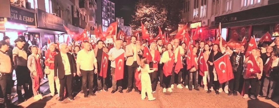 Atatürk ve Cumhuriyet sevgisini hep bir ağızdan haykıran, omuz omuza Türk Bayrağını dalgalandıran halk, sokakları insan seline döndürdü.