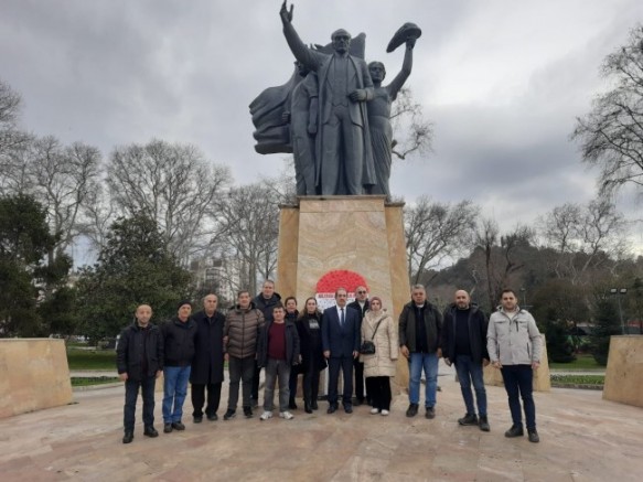 Dernek üyelerinin yoğun katılım gösterdiği törende, anıta çelenk bırakıldı, ardından saygı duruşunda bulunuldu ve İstiklal Marşı okundu.