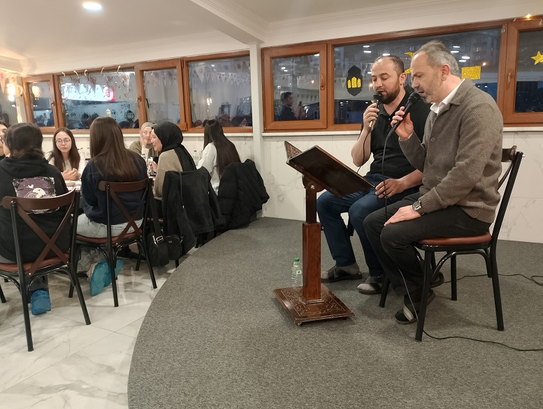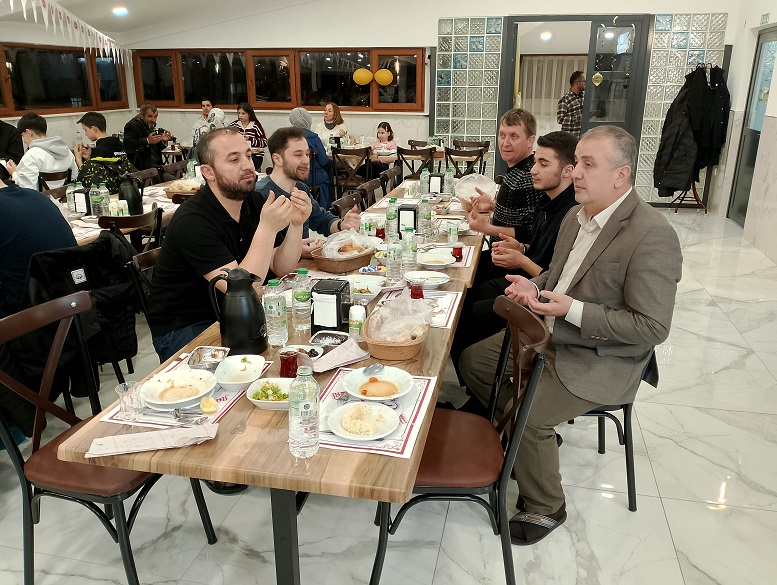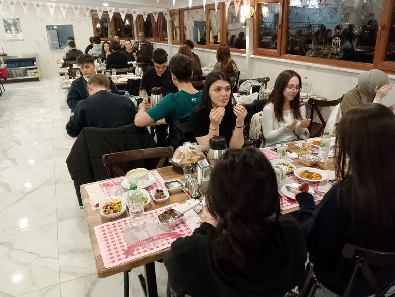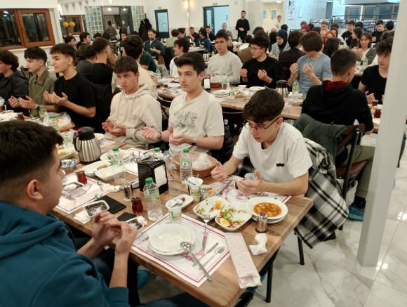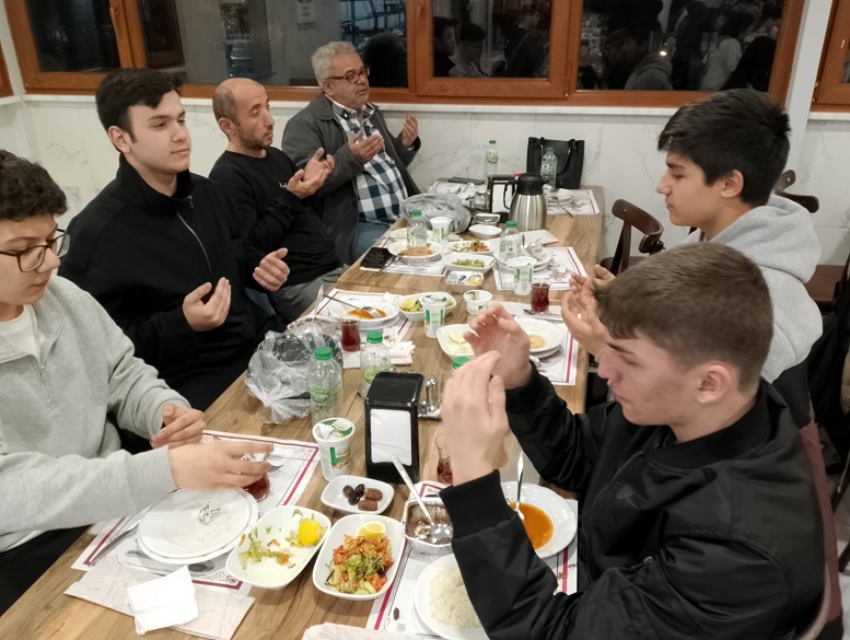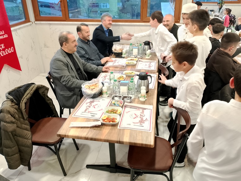 Yatılı kuran kursu öğrencileri tüm masaları dolaşarak, iftar etkinliğine katılan öğrencilere ve iftar yemeğine katılan basın mensuplarına ve okul Müdürlerine hoş geldiniz, Onur verdiniz dediler.