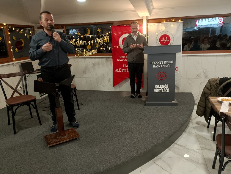 İftar programı, Müftü Kütükçü tarafından yapılan duanın ardından sona erdi. Sizleri iftarımıza katılmanıza müsaade eden ailenize teşekkür ediyorum, Müftülük kurumunun insanlar için önemi nedir diye merak ediyorsunuzdur, Müftülüğün insanın doğuşundan, vefatına kadar hizmeti olduğunu bilmenizi isterim, insanın doğuşunda, bebeğin ismini koyarken sağ kulağına ezan, sol kulağına da kamet okur imam efendi, vefatında yıkanması, cenaze namazının kılınması ve kabre konulması, müftülüğün tayin ettiği imamlar tarafından yapılmaktadır dedi. Kütükçü daha sonra yemek duasını yaptı, iftar etkinliğine katılım sağlayanlara teşriflerinden dolayı teşekkür etti. İftar etkinliğine katılanlar arasında,(KEAL) okul Müdürü Faruk Yavuzyiğitoğlu,Güzel sanatlar okul müdürü Şükrü Doğanay(EGD)Ereğli Gazeteciler derneği Başkanı Şafak Erel, Başkan yardımcısı Recep Akkaya, Genel Sekreter Haydar Yağız, Ereğli’nin sesi gazetesi imtiyaz sahibi duayen gazeteci Hüseyin Orhan katılım sağladı. Müftü Kütükçü,28.03.2025, Cuma günü akşamı, kdz Ereğli Huzur evi sakinlerini ve roman vatandaşlarımıza da iftar etkinliği yapılacağını bildirdi.