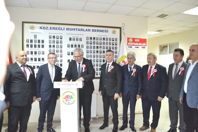 Törenin ardından Ereğli Kaymakamı Yapıcı ve Zonguldak Milletvekili Saffet Bozkurt, Ereğli Ziraat Odası Başkanı Zafer Yalman, Muhtarlar Derneğine kutlama ziyaretinde bulundu.