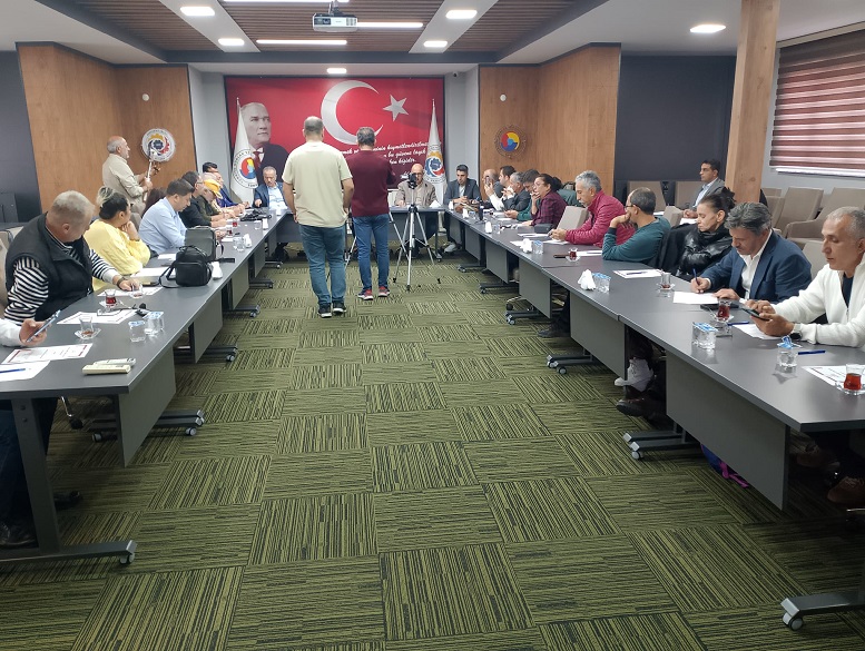 TSO Meclis Toplantı Salonunda düzenlenen toplantıda TSO Meclis Başkanı Tasin Tanyıldız, Yönetim Kurulu Başkan Yardımcısı Harun Günönü, Yönetim Kurulu Üyeleri Şemsi Durdu, Kadir Çaygeç, Cem Gül ve Ali Özkan’da yer aldı.