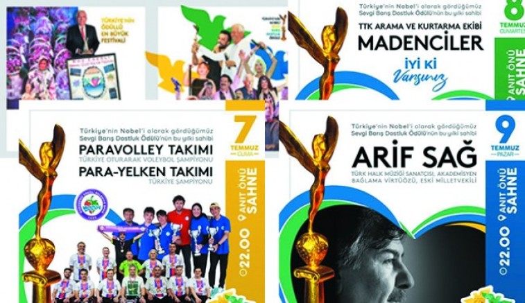 6-9 Temmuz’da yapılacak ve Ereğli halkının bir kez daha Sevgi, Barış, Dostluk diyeceği Türkiye’nin En Büyük Ödüllü Festivali’nde, SBD ödülleri 6 Şubat depremlerinde kahramanlıklarıyla gururumuz olan Zonguldak’lı Madencilere, Türk Halk Müziği’ne katkıları nedeniyle Arif Sağ’a ve Türkiye Şampiyonu olan Kdz. Ereğli Belediyespor Paravolley Takımı ile Para-Yelken Takımı’na verilecek.