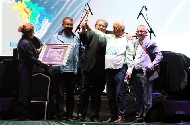 Arif Sağ, ödülü almak üzere oğlu Tolga Sağ ile birlikte sahneye geldi. Belediye Başkanı Halil Posbıyık, bu ödülü Arif Sağ gibi bir sanatçıya vermenin mutluluğunu yaşadıklarını belirterek şunları söyledi.