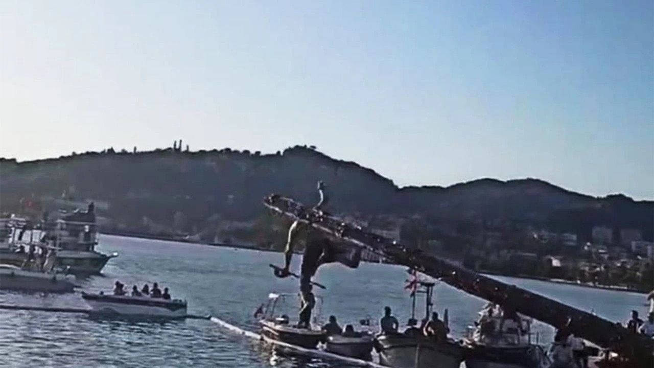 Müsabaka ve diğer etkinlikler kapsamında düzenlenen yağlı direk yarışması Bozhane Limanı'nda renkli görüntülere sahne oldu.
