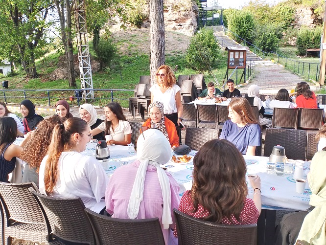 Eğitim Fakültesi bahçesinde düzenlenen bilgilendirme toplantısının ardından öğrencilere Gazi Alemdar Müze Gemisi, Kent Müzesi ve Kaletepe gezdirildi. Kaletepe’de öğrencilere Kadın Gücü Kooperatifi tarafından çay, simit ve keş ikramında bulunuldu.