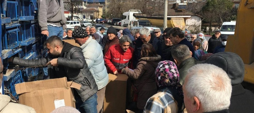 Tane fiyatı 250 lira olarak belirlenen atak ve lohman yumurta tavuğu dağıtımı Cumartesi pazarında gerçekleştirildi.