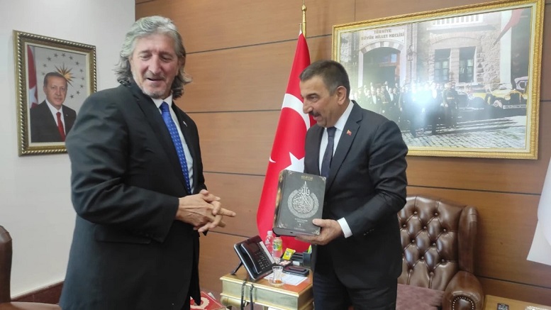 Ziyaretin sonunda ZGC Başkanı Derya Akbıyık, Vali Osman Hacıbektaşoğlu’na Kırgızistan’dan getirilen el işlemeli özel çanta ile birlikte Kur’an-ı Kerim ve Türkçe meal kitabı hediye etti.